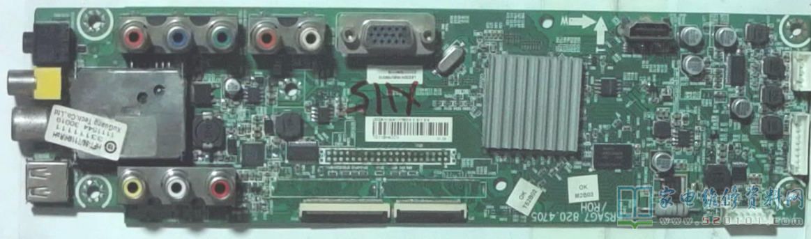 一台海信LED32K10液晶电视,故障现象是不定时死机。此机采用的是RSAG7.820.4705板,故障原因是主芯片MST6M182底部接地焊盘接触不良,用热风枪重新加热至焊锡融化即可。