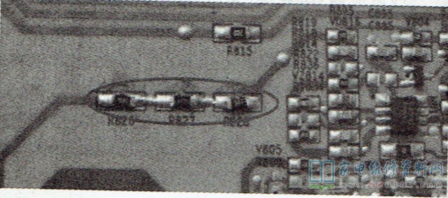接修一台海信LED46K310NX3D液晶电视,故障现象是三无蓝灯亮或遥控关机后不开机。故障原因:本机采用RSAG7.820.4782电源板,常见原因是PFC电压取样电阻R826、R827、R828漏电,取下清洁后重新焊上即可,故障时测PFC电压低于380V,如图1所示。