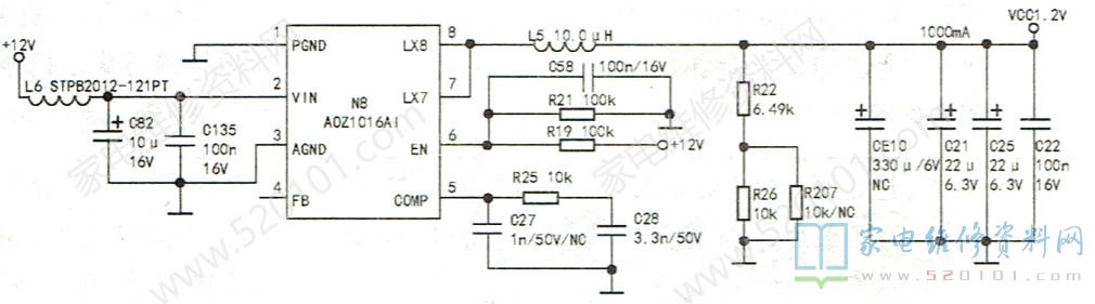 海信LED46XT68G3D液晶电视指示灯亮不开机的维修 2022-11-11 18:35:05 阅读 904 次 评论 0 条 摘要: 接修一台海信LED46XT68G3D液晶电视,故障表现为灯亮不开机。故障原因:通电测主板RSAG7.820.4350各组电压,发现没有为主芯片供电的1.2V内核电压,试更换N8(AOZ1016AI )无效 接修一台海信LED46XT68G3D液晶电视,故障表现为灯亮不开机。故障原因:通电测主板RSAG7.820.4350各组电压,发现没有为主芯片供电的1.2V内核电压,试更换N8(AOZ1016AI )无效,最后查出⑥脚使能端外接电容C58漏电,如图1所示。 版权声明:本文为转载文章,版权归原作者所有,欢迎分享本文,转载请保留出处! 点赞 分享: PREVIOUS:海信LED55XT710G3D液晶电视不开机或不定时死机 NEXT:海信LED55XT770G3D液晶电视不定时自动关机 文章导航