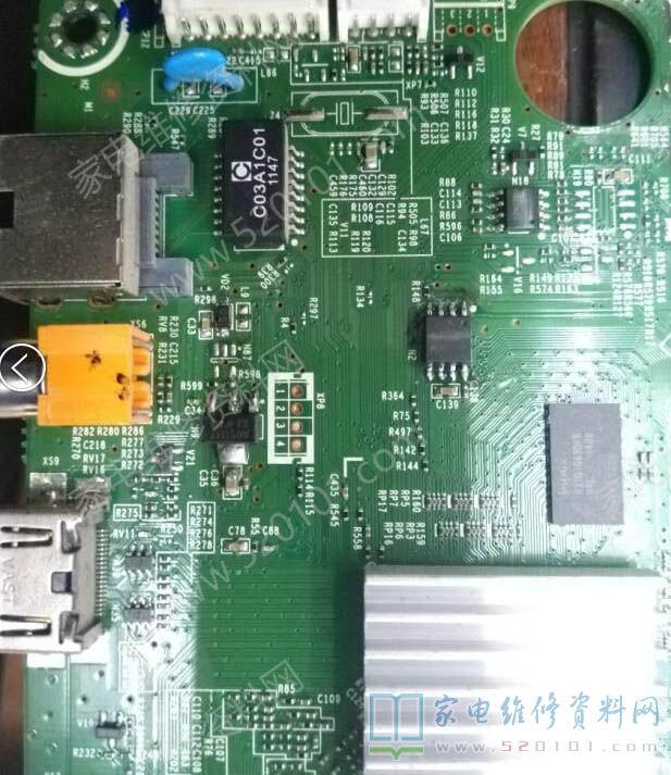 接修一台海信LED55T36X3D液晶电视,故障表现为红灯亮不开机,拆机检查电源板5v供电正常,按开关,遥控无反应,判断主板有问题,查N87(5脚小贴片标注QDN)三脚输入4.6v五脚输出0v,查资料发现N87完整型号是TLV70033DDCR,是一个5v转3.3v稳压芯片。根据电路分析发现N9是一个3端稳压IC空位没焊接配件但是与N87是并联的,于是把N87拆了找一个AMS1117-3.3装上,试机一切正常。