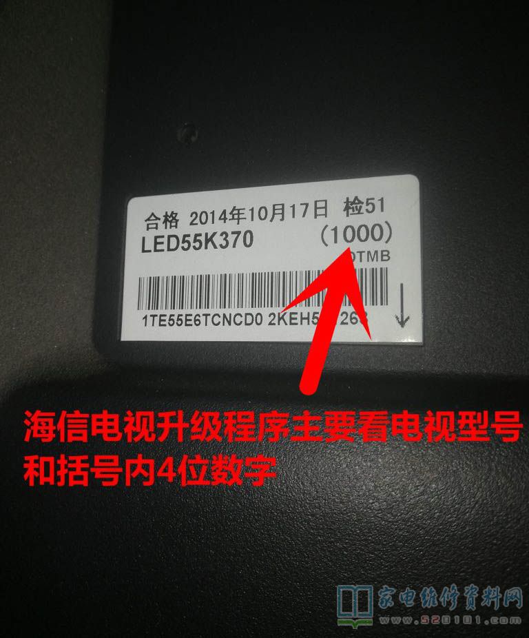 查资料得知此机是5505机芯,升级程序还是比较容易的,为防止白跑带了两个U盘去用户家。到地方不管用哪一个都升级不了,海信售后网站上的软件不用考虑,U盘也都是升级电视用过的,以前升级这个机芯也是U盘插电视通电就升。想起这个机芯还有改文件强制升级方案,又回店改程序文件再去搞定!下面发上此机芯升级方法和使用过的数据!