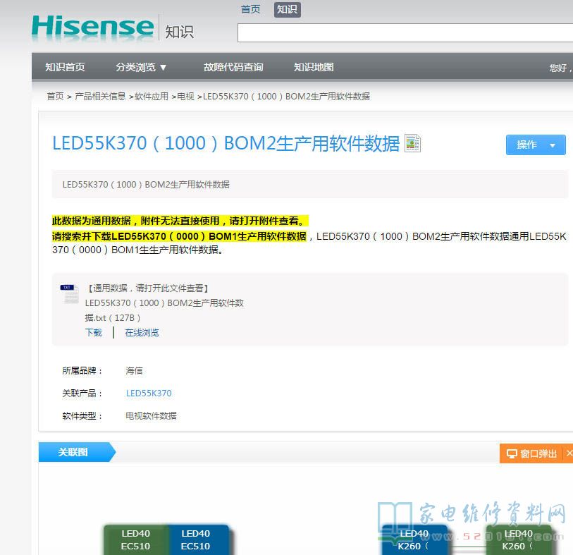 海信LED55K370液晶电视BOM2软件升级数据包)。
