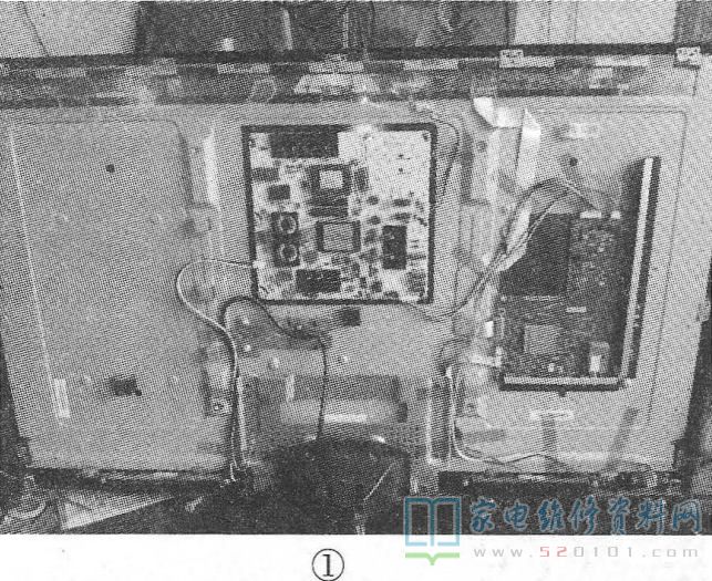 分析其黑屏原因,大致是主板、电源、主板控制电路及LED灯条等故障。按机器开机键(感应式),指示灯和电源都有相应变化,大致可排除主板原因,电源部分似乎也无问题难道是屏内灯条坏了?那样就要开屏修,太麻烦了。反复观察机器电路板,由于黑屏,各器件摸着也无温升感,只有副电源+5V的滤波电容稍有温升,但看起来光亮如新,无鼓胀变形,焊点无过热痕迹,就是低了0.3V,且主板控制没问题。由于电路复杂且保护电路多,真有点难了。