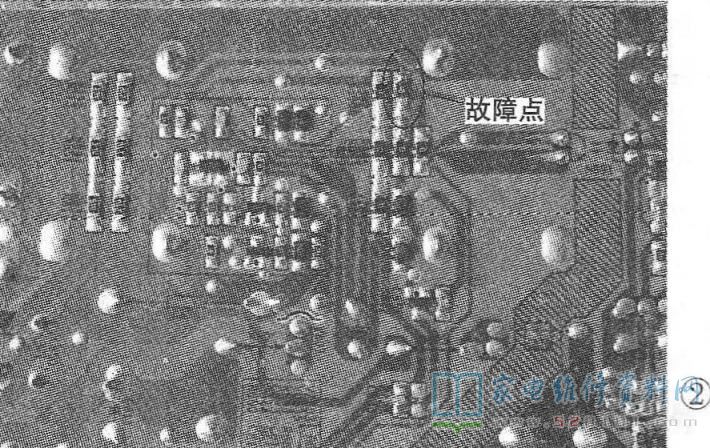 实测V812的b极电压为0V并且对地无短路,再向前测R893和R892的电压,当测到R892的一个脚时12V突然正常,仔细观察R892(实为0Ω电阻,作用相当于跨线,见图2)出厂时有一个脚没焊上锡,时间长了造成了一个脚虚焊,V812的b极和VZ810负极没电压,所以V812截止,无法为N852提供正常的工作电压,造成12V一直在5V~11V之间跳变, 主板因供电不对工作错乱出现了指示灯红蓝交替闪烁整机不开机的故障。