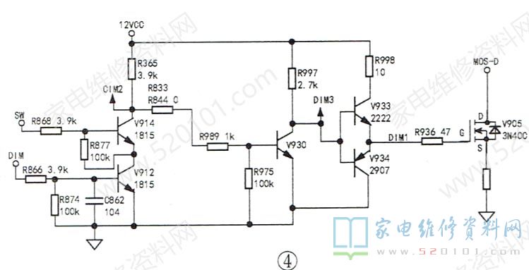 该控制电路主要由V912、V914、V930、V933、V934、V905组成,如图4所示。