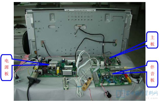 此组件是由连接电源板、主板、伴音板等其它附件组成,如下图所示:
