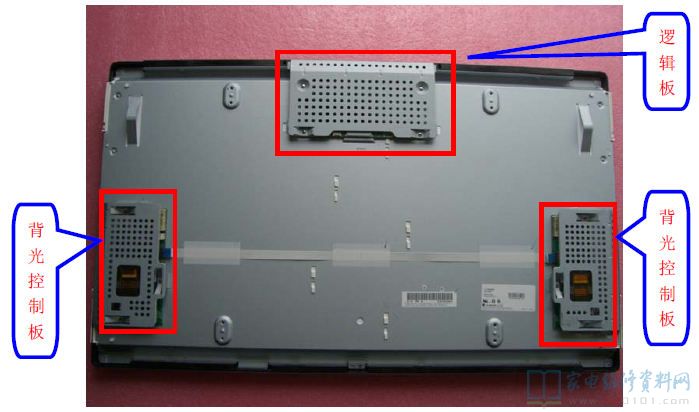 液晶显示屏背后包含一对背光控制板和逻辑板,如下图所示: