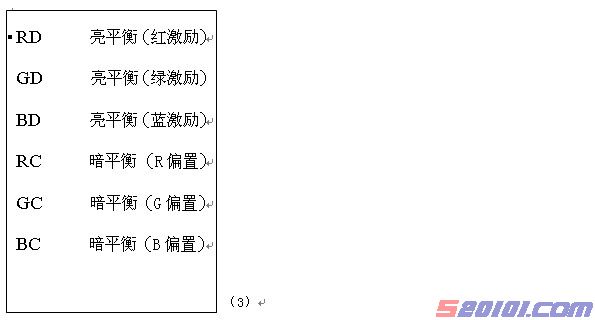 工厂生产中已调整好。一般通过调整亮平衡数字(RD、GD、BD)及暗平衡数值(RC、GC,BC)可自行调整。