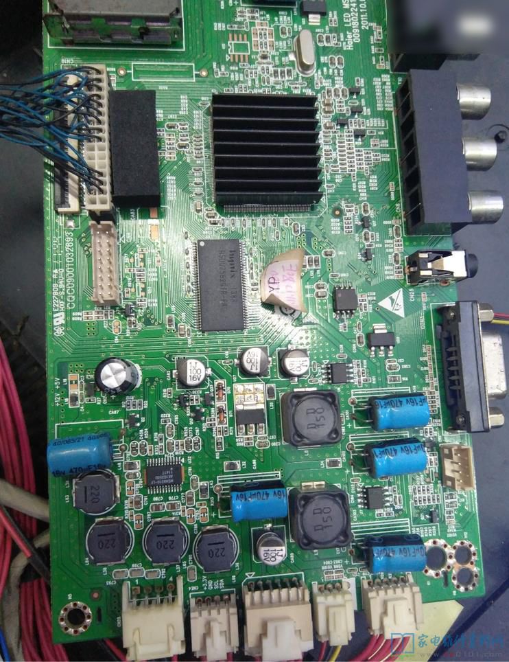 近日接修一台海尔LE26Z300液晶电视,用户说看到一半有声音黑屏,有时候屏幕亮有图像又没声音,声音嘶哑有杂音,不定时出现。试机半个小时后出现屏幕一直闪烁,亮了又灭,过了一会又自动亮,声音正常。关机后立刻开机又黑屏了,再关机开机屏幕亮了又无声音。