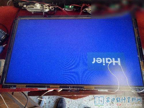 接修一台海尔L26B1液晶电视,用户已经拿到其他店里被别人告知屏幕坏了,开机白屏慢慢的出现图像,出现图像慢,可能不死心又拿我维修部这里,让看看直接上测屏工具让用户看,上家应该也已经告诉用户基本报废了。静下心来然后就查阅资料把vgh电压飞线到耳朵成功救活,如下图所示。