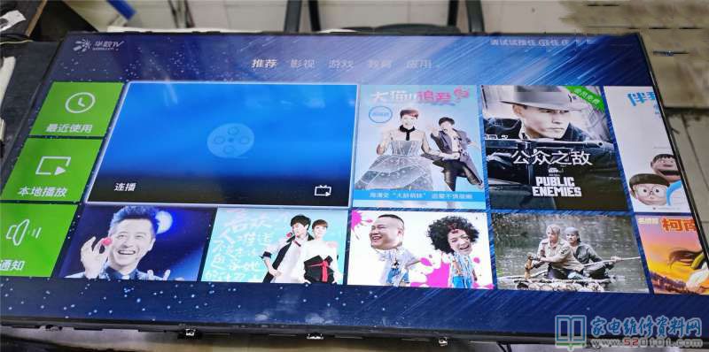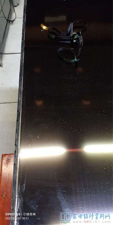 前两天接修一台海尔LS55U51A液晶电视,故障表现为开机出现右边黑暗情况,如下图所示,拆开电视,立即拆屏框,按照以往经验,撕掉所有的右边“耳朵”,再次通电试机,电视屏幕画面一切正常。