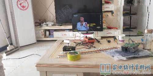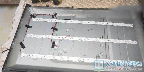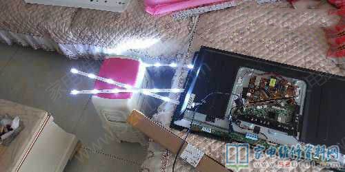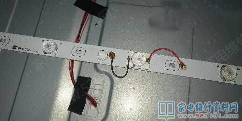 接修一台海尔LD32U3200液晶电视,故障现象是黑屏有声音,背光灯不亮,有手电筒照屏幕有图像,打开机器,用点灯仪检测两根灯条不亮,一根亮,开屏发现此机器被人维修过,用户描述修好看了一个星期就没图像了。