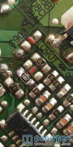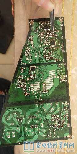 换上新的灯条检测原理电压135伏,电流165毫安,换了灯条为了保险起见,决定改一改,跑线路查电流调整电阻,这个灯条电流经过LED管理芯片MAP3301,8脚输出,接一个10R0电阻R908A,这个贴片电阻是10Ω,拆掉换上20Ω电阻20R0,开机检测电流100ma,电压126V(稍微有点波动),灯珠发光正常,维修完成,如遇到此型号机器,可以参考一下。