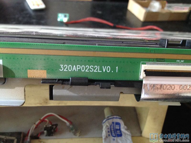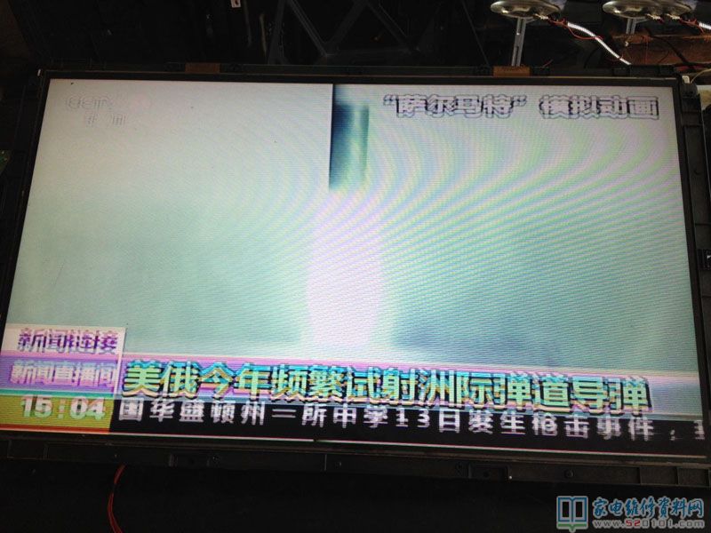 关于海尔L32B1这款电视的液晶屏,该屏LTA320AP02几年后故障较多,网上看到好多故障案例,但是修好的却无一例。今天我又遇到一台,开机图像很好,工作大概10多分钟图像显示图片那样的重影故障,用割线的方法去维修但没有成功。无意间用洗板水清洗COF后,发现右边cof有两根排线跳火了,不过这时候发现电视机图像居然好了,立马关机。