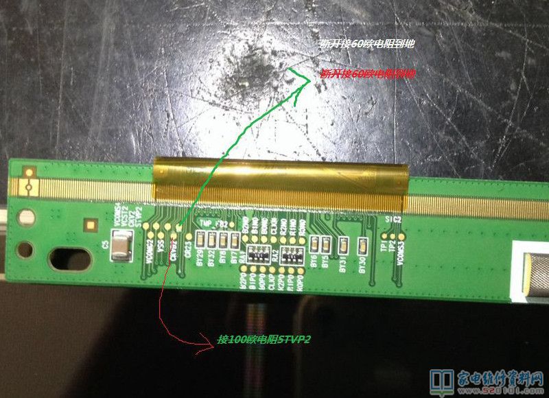 检查顺COF排线理下来到屏电路板发现是CKVB2和STVP2,估计是当时洗板水未干造成。于是清理COF积碳,循着CKVB2和STVP2跳火图像会好的理论,断开STVP2和COF的铜线,在屏电路板STVP2和屏连接铜线对地接个60欧电阻,在STVP2和cof铜线和CKVB2间接个100欧电阻电视机修复。电视机现在观察中,差不多两个小时了。不过修好了还是要有理论支持,以便今后遇到其他相同故障好不盲目维修。