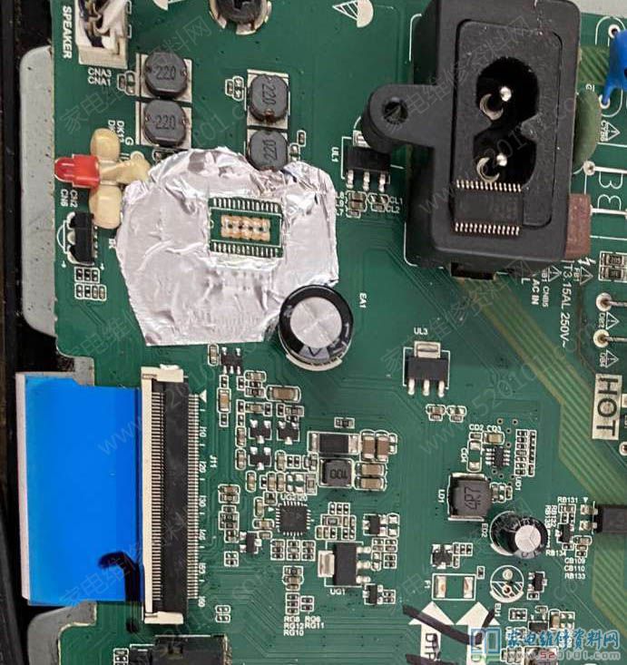 接修一台海尔LE32B310P液晶电视,故障表现为开机图像正常,没有伴音,不管有无信号输入,发现都有一只喇叭会发出有规律,间隔不到一秒的塔塔声。网上没找到相关图纸,那就拆一块伴音块TPA3110LD2换上,故障还是一模一样。看到此集成块外围没有多少元件,先测量一下,当测到CA4的时候,发现此贴片电容已击穿,找一颗换上,故障完美修复。