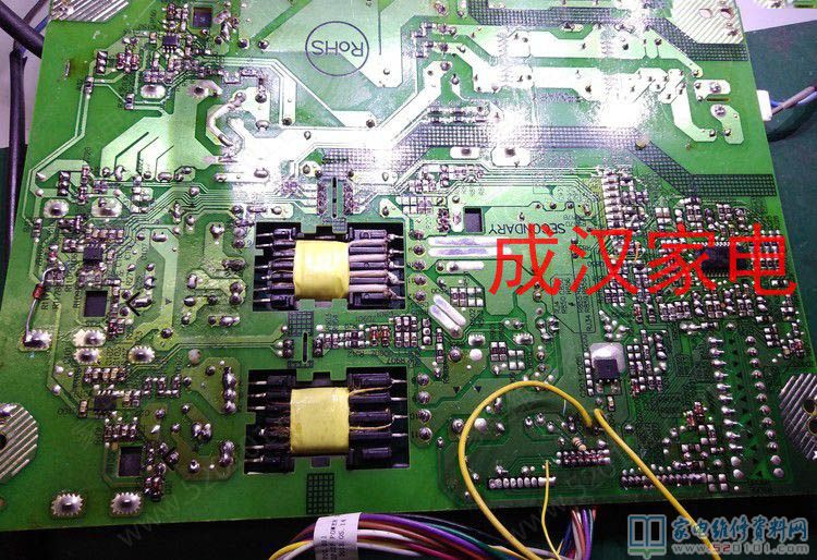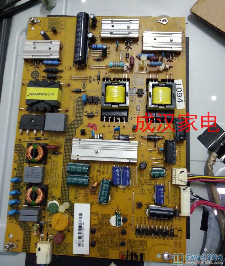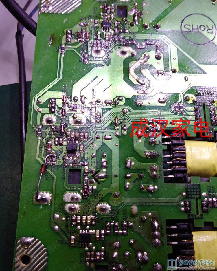 接修一同行送来的海尔LD46U3200液晶电视,说不定时关机,有时一分钟关了重新送电又可开,可能松焊,但补过了之后故障依旧,所以拿来我维修部研讨下,最后查出是ZD102导致的,换了22V稳压的,Q851拆了不要就行了,这是负责关断12V输出的,如下图所示。