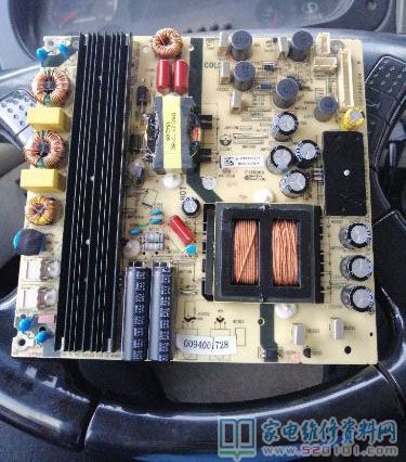 一台海尔LS55M31液晶电视,故障表现为该机电源指示灯不亮,接通电源,PFC有390v正常,变压器次级两组电压,一组去灯条140v左右,另一组10V左右(本应12V),无12v和5v电压,5V的电感发烫,怀疑5V转换芯片有短路,拆下芯片检测,是好的。不上芯片又检测电感后端有短路,仔细检测,一贴片电容短路,取掉电容,装上芯片,试机5V输出正常,12V正常,整机恢复正常,电容有几个串联的,取掉后没合适的就没有装了。