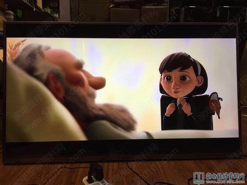 修好后,图像很好,但是有个缺陷,屏幕最下方有一条0.5cm宽的线条,不知道故障还会不会重现。