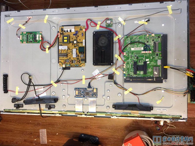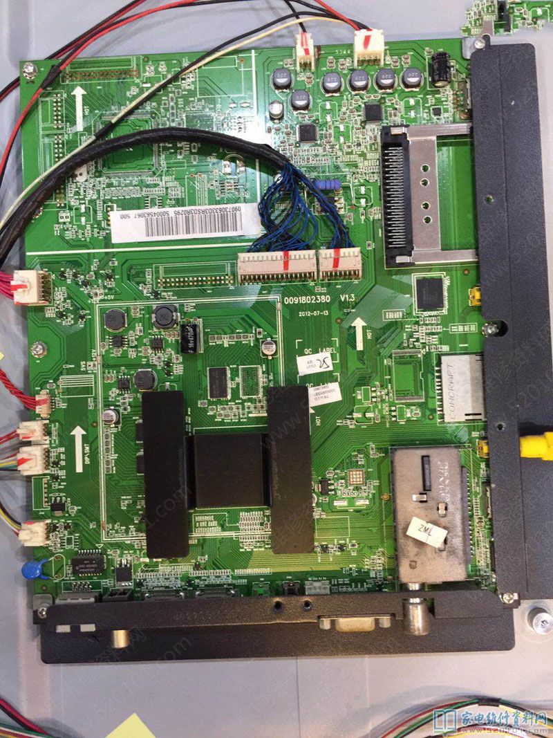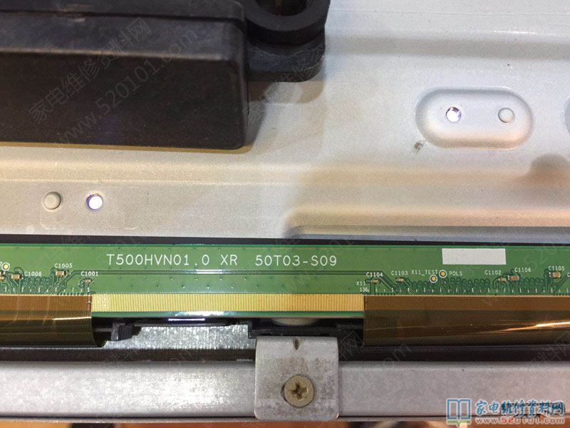 接修一台50寸海尔LE50A800N液晶电视,屏幕:友达T500HVN01.0 XR 50T03-S09,故障现象为液晶屏幕图像重影上下抖动,拆机检测VGH=27.6V VGL=7.8V VCC=11.8V等电压均正常