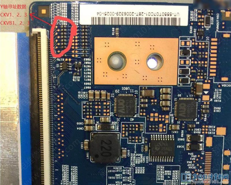 于是上网查相关故障的资料,后来查阅发现是屏幕内部Y轴寻址错误造成的故障,想到要拆屏维修风险很大,于是决定自己动手改动相应寻址数据线获得成功,如下图所示。