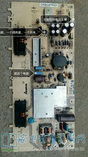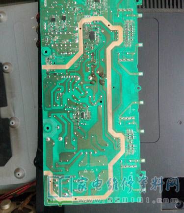 最近接修一海尔L32R3液晶电视,客户说开机二十分钟后电视出现无图像,有声音,关机再开又可以看十几分钟。客户走后在我维修部试机,果真和客户所述一样,拆机,电源高压一体板。开机5V、12V、24V正常,此机高压逆变单独105V正常,二十分钟左右,背光灭,5、12、24V正常,开机背光控制电压3,4Ⅴ左右正常,105V升到160V,高压到逆变没工作,检查没发现开焊,重点检查逆变部分,发现C306A容量200nF变小为1nF。换新后修复。