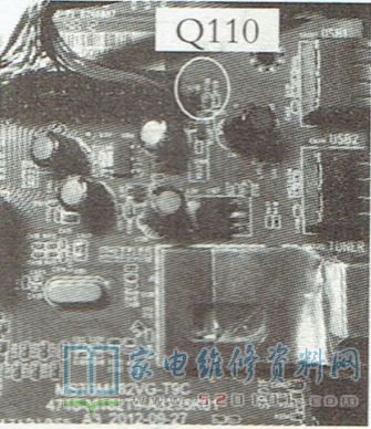 接修一台统帅LE32KUHI型液晶电视,开机后电源指示灯亮,伴音正常,无光栅无图像。拆机检查,目测三合一主板(板号为MST6M182VG-T9C4715-M182T9A3255K01)上无异常损坏的元件。上电试机,测LED背光电压输出插座CN3处电压为60V ,正常;上屏线插座CN401处的上屏电压为7.6V,明显偏低;通过电感L110送给上屏电压控制电路的12V电压正常。断电检查,上屏供电电路中的电阻R129~R233、电容C130、三极管Q109(IAM)、Q110(0321),发现Q110 的b-c结漏电(见图1)。由于手头没有同型号的贴片三极管,用一只丝印为WMG的贴片三极管换上试机,图像正常,故障排除。