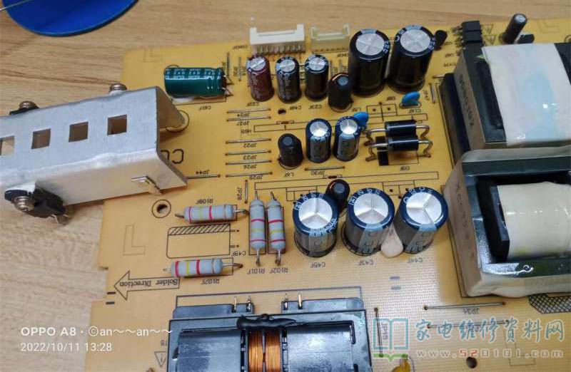 接修一台海尔L42F6液晶电视,故障表现为按遥控开机,红灯闪后常灭,不开机,断电再试,正常开机。电源输出接口5VSB只有4.85V,按开机键后24V电压有28.5V慢慢降为0V,ON/OFF有2.5V,说明主板有控制,故障在电源,顺线路查找,发现5V的2只滤波电容16V/680UF有轻微鼓包,二个电容在散热片下边,应该是通病。换后正常。