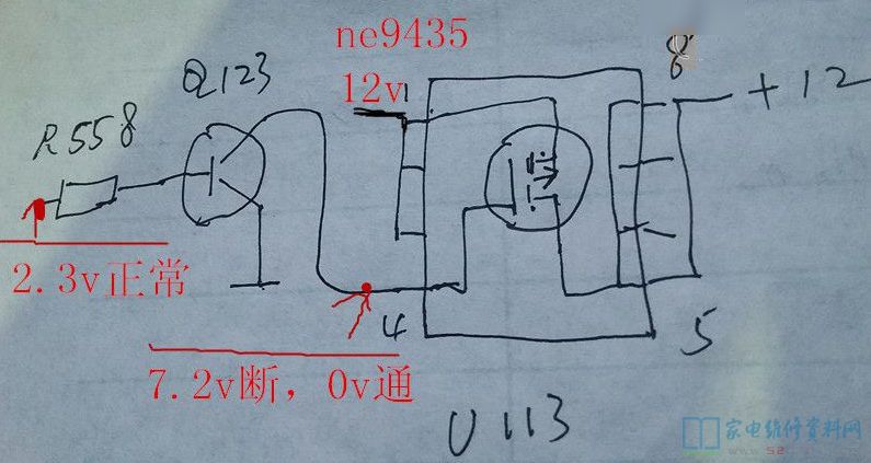 创维49E510E液晶电视开机加载后即黑屏维修 2019-05-03 17:45:07 阅读 498 次 评论 0 条 摘要: 本人近期接修一台创维液晶电视49E510E,开机加载完就黑屏,拆开机器,测12V、24V都正常,黑屏时背光一直正常点亮,但逻辑板12V测得零V,供电由主板的U113和Q123组成,测Q123 b极高电位 本人近期接修一台创维液晶电视49E510E,开机加载完就黑屏,拆开机器,测12V、24V都正常,黑屏时背光一直正常点亮,但逻辑板12V测得零V,供电由主板的U113和Q123组成,测Q123 b极高电位时屏亮[电阻前2.3V],U113的4脚黑屏时7.2V,屏亮时0V。画了个图不太清楚,讲就着看,有与到的同行会省时省力,快速修复。 版权声明:本文为转载文章,版权归原作者所有,欢迎分享本文,转载请保留出处! 点赞 分享: PREVIOUS:索尼液晶电视HDMI图像异常解决办法 NEXT:小米L55M5-AZ液晶电视不开机故障维修 文章导航