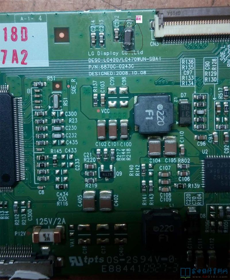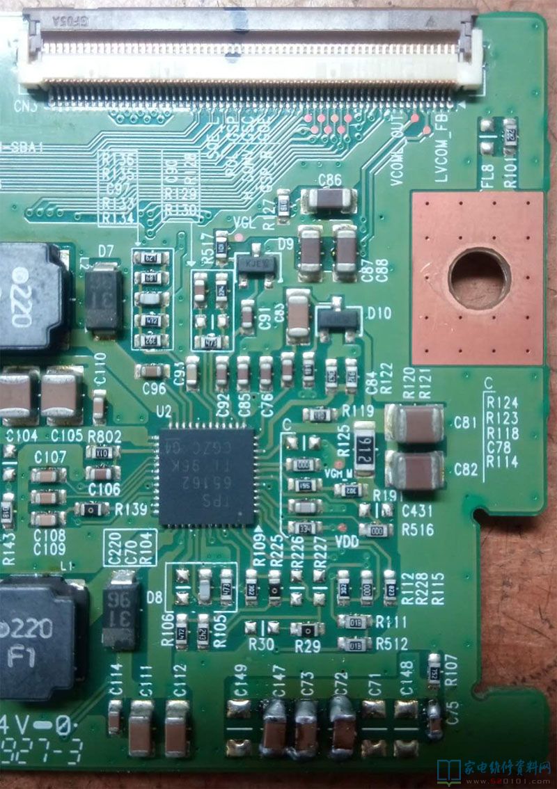 接修一台创维42K10液晶电视,故障表现为开机灰屏,拆开机器,测逻辑板6870C-0243C 有YGL电压,VGH、VDD都没电压,测VDD测试点对地电阻270欧。如果VDD是3.3V,那这样的电阻也没大错。后来找到图纸,逻辑板电源芯片TPS65162,vdd是15V,相当于其它逻辑板上的VDA,试用12V直接对VDD点烧机,找到电容漏电,换之正常。正常后,上机测VDD为20伏。该板测gama电压v2比v1高,v1和v3一样,v16和v18一样。以为图像会有异常,结果没事,色彩挺好,维修完成。
