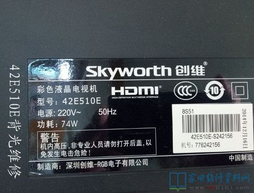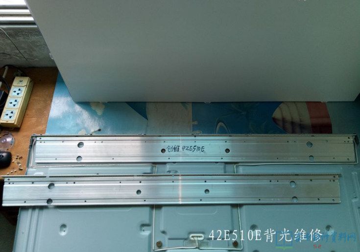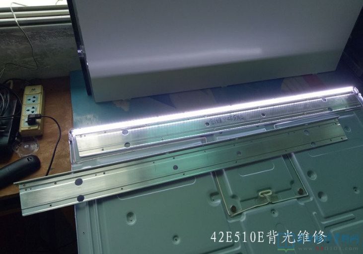 近期接修一机器创维42E510E液晶电视,故障表现为开机卡厂标处。用U盘刷机无果,换25Q16刷程序后重新刷机也无效,无奈,换代用主板;调好倒屏和清晰度后,突然黑屏。但伴音正常。反复检查(多次拆装),最终怀疑灯条有问题。