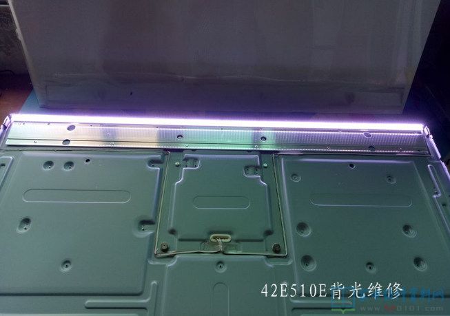 维修总结:以往样类似现象遇过,但拆机看灯条,亮度明显不一样。但这例不同,拆屏后上电,灯条点亮时,所有灯珠发亮且亮度非常均匀。一点儿不像是灯条有问题。 背光板在拆屏前参考过技改,连接几个插座引脚,但无效。