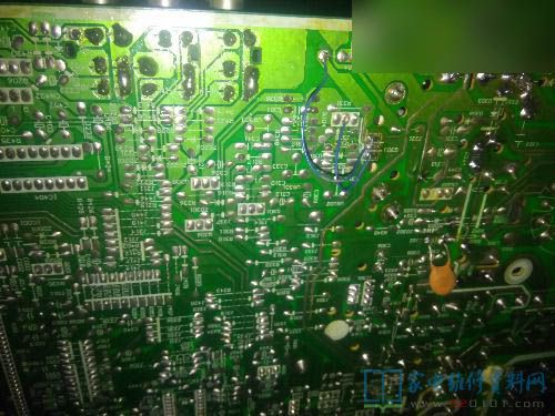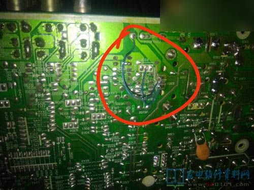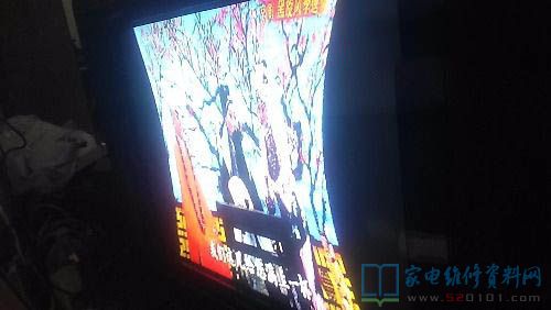 测量校正管供电电压,无供电电压。断开测量供电电阻的电压是将近40V。拆掉校正管测量引脚发现供电引脚的铜皮断了。经测量除了上面的接地脚没有断,其他两个眼角全部断了,然后用导线进行跳线,将电路复位,开机试机电视机正常到此维修结束。此机是一机多病。之前用户描述电视机就会出现图像放大。用户描述的应该是上面的场效应管损坏导致的图像放大。之所以出现枕形失真的话,可能在维修的过程中,翻板子的时候本身就接触不良,然后铜皮断了。