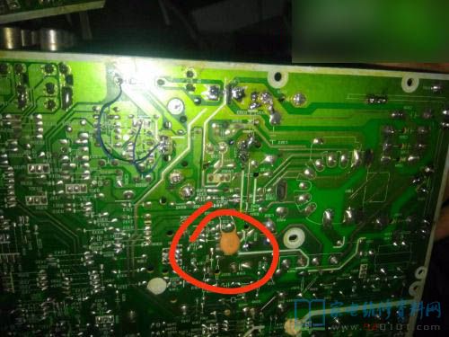 检查此电容是校正电路的元件,顺着电路进行查找在散热片的上面有一块小板,也是校证电路的一部分 拆下来一个一个元件进行测量,发现有一个19N20C已经击穿损坏,找不到同型号的就找了一个差不多场效应管进行代换。通电试机,电容再次损坏。可能不是此元件引起的损坏,这个场效应管损坏应该会出现图像失真。到此维修陷入僵局,就在各个维修论坛进行查找同样故障的案例,还真有同行碰到过。说是有一个瓷片电容损坏导致的烧电容,这个瓷片电容的话,应该起到的是反馈的作用吧。容量是392K尾号是C322找了个472K电容换上开机试机,不烧电容了但是图像出现枕形失真。以为是更换的电容大小容量不符合,就用同型号的进行代换,代换之后的话还是一样的问题。应该故障还在校正电路。测量校正三极管没有损坏。