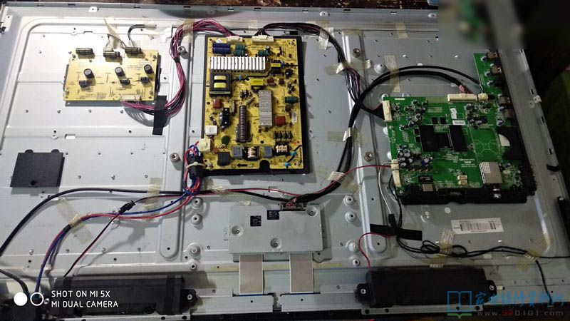 最近一用户抱了一台创维液晶电视电视过来,说故障是图像跳动。通电试机,看了现象以为是三星屏就告知用户这电视有一半几率修好,跟用户报价后同意维修明天取。等用户回去之后,拆机一看,发现逻辑板是两条排线,于是断其中一条屏排线开机发现一半能正常显示,这时就可以估计是另一半屏出问题了。把屏边板R11-R16这6个电阻去掉,使出问题的部份功能断开就可以正常显示了,故障维修完成。