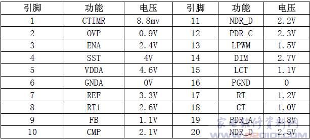2、0094001263A组件电源板U3(TEA1532)各脚位说明(在接背光正常工作下测量):