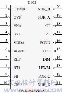 5、0094001263A组件电源板芯片U102(OZ964)引脚功能接背光正常工作下测量极电压,引脚定义