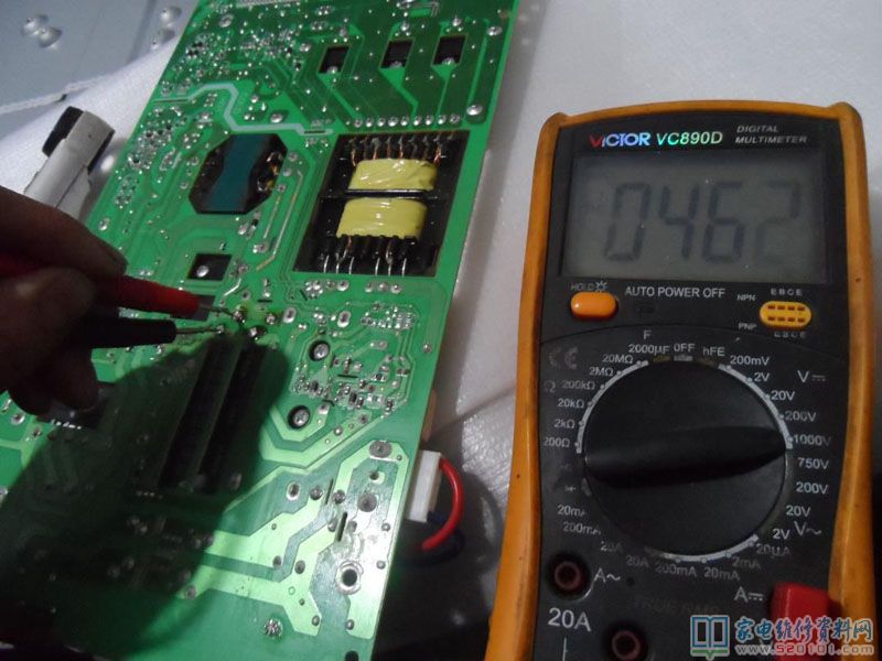 检查PFC电压高达462V,原来是PFC电压输出不正常引起的烧主电容。引起12V和24V输出电路保护。检查PFC电路外围电路没有发现异常,PFC环路电阻1.5M图标的是2M也没发现异常,更换也无效,那只好更换PFC驱动块FAN7930,更换后输出正常,PFC电压376V,机器正常,本次维修供新手学习参考,请多指教。