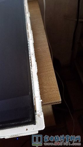 目测这台液晶屏幕没有破碎的痕迹,插上电源,指示灯亮起,随后背光也亮了,屏幕黑屏。到这里可以估计主板应该没多大事。赶紧拆开后盖,发现此机有被修过的痕迹,再仔细一看,逻辑板屏线被拔掉了,怪不得黑屏。重新插好屏线,再开机,图像出来了,遗憾的是满屏横线,而且横线不停的变化。