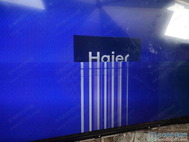 接修一台海尔LE32T30液晶电视,其屏型号H320EHL,故障表现为上半图像正常,下半图像随上半图像出现移动的竖直条纹,如下图所示。由于上半图像正常判断为下半Y轴坏 该机Y型号为RM76153FJ-0A1。