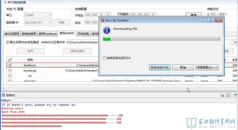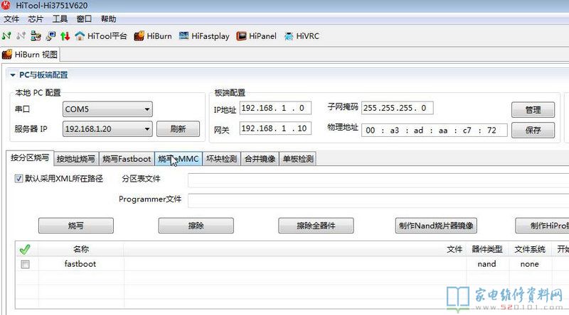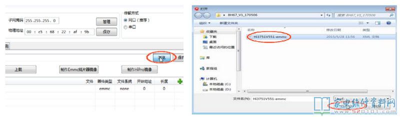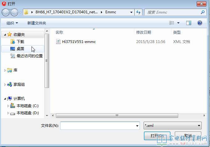⑤、选择分区文件“Hi3751V551-emmc.xml”,点击打开。