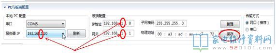 ⑤、设置好串口、网络IP、网关等相关参数。设置好后,点击“保存”按钮。