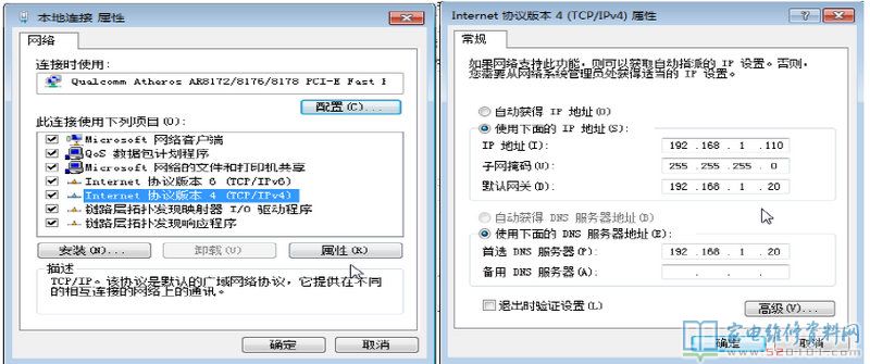 ②、配置本地连接的静态IP 地址,不能自动获取(通过路由器来相连,可以自动获取)。