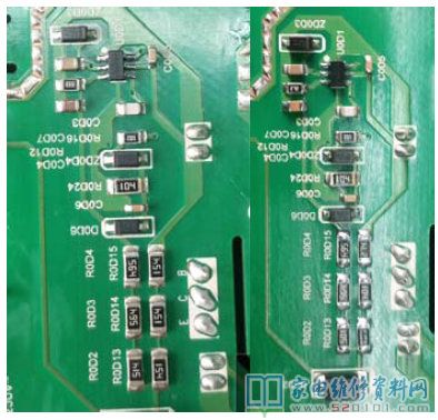 一台创维32E3系列液晶电视,采用的机芯是8S46,故障表现为不开机,此板为多合一主板,电源电路,TCON 电路,主板电路集成一体,仔细检查PCB板正反面,没有发现缺件或者元件脱落烧毁现象,检测各功率元器件均无短路,通电检测无12V 24V, 前级320V正常,检测U0D11NCP1256 的第5 脚VCC5V 左右,正常为17V左右,怀疑NCP1256 损坏。没有原装NCP1256,仔细研究,发现NCP1251 与NCP1256 管脚一样,外围基本一样, 更换NCP1251后,再次通电,电源部分后级12V、24V 正常输出,主板部分也正常工作。接工装试机,图像声音正常,当老化1 小时后,电源部分又无电压输出。再次仔细研究比对,把取样 电阻R0D2/514/R0D13/154/R0D14/154/R0D15/154 更换为R0D2/105/R0D13/104/R0D14/104/R0D 15/274。NCP 第三脚OVP 电阻R0D12/333 与C0D4/470nf 更换为R0D12/272 与C0D4/220nF,再次试机、老化,故障排除。