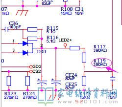 一台创维49G7200液晶电视,故障表现为背光半边偏暗,通电试板,用灯条试电源板(168P-L6J011-00),是半边暗灯闪。测CN4 输出电压 56V,CN4 与CN3 输出电压相差3V,检测U5(OZ568GN)芯片的输入电压都是正常,怀疑是U5 (OZ568GN)的问题。代换检测,故障依旧。根据经验怀疑是外围的电容电阻的软故障引起的, 检测发现竟然是U5(OZ568GN)的OVP 输入R119 的电阻变值导致的。代换R119后,试机、 老化,背光正常。