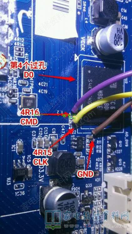 海尔液晶电视T966机芯模块EMMC点位图 2022-04-01 18:20:25 阅读 760 次 评论 0 条 摘要: 海尔液晶电视采用T966机芯模块主板的EMMC飞线点位如下图所示,其中CMD、CLK、D0、GND如图中的箭头标注所指。仅供维修参考。 海尔液晶电视采用T966机芯模块主板的EMMC飞线点位如下图所示,其中CMD、CLK、D0、GND如图中的箭头标注所指。仅供维修参考。 版权声明:本文为转载文章,版权归原作者所有,欢迎分享本文,转载请保留出处! 点赞 分享: PREVIOUS:海信RSAG7.820.5060主板EMMC点位图 NEXT:海尔LE48AL88G31液晶电视(0091802118板)EMMC点位图 文章导航
