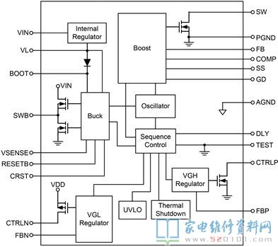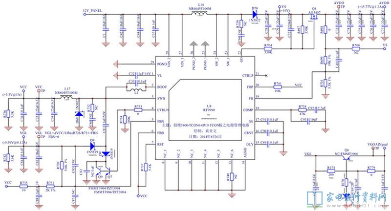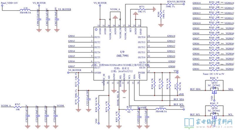对于“黑屏”故障,首先确认主板送到TCON板的LVDS信号为正常,然后依次检查TCON板上的VIN、VCC、VGL、DCOUT、RESETB、AVDD、VGH等供电或信号输出到相应电路是否正常,接着检查电平移相(转换)、伽玛校正电路是否正常,最后考虑屏体驱动电路是否损坏。