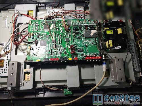 接下来查前级电路,由于对这种板子不熟悉,上网查阅,有三例相同故障,有的说是电源电容鼓包,有的说是数据不对,还有的说是7809稳压管坏,赶忙看看电容有没有鼓包,还真有一个鼓包的,换之“涛声依旧”。又上某宝买了一个数据刷上去,还是不行。网上找不到图纸,只好拆板跑线,分析工作原理,发现2616的信号输入来自于一个358运放,运放的输入来自于1144,另一个运放负责信号输出,信号输出有声音,功放那路没有信号,目标锁定1144,查供电没问题,查资料得知18、19脚是数据和时钟,搬过来示波器,18脚有信号波形,19脚没有,顺藤摸瓜,两个脚是分别通过两个101贴片电阻经插头通向主板,测其中一个101电阻已开路,手头没有100欧贴片电阻,用一个91欧代换,开机终于听到久违的声音。