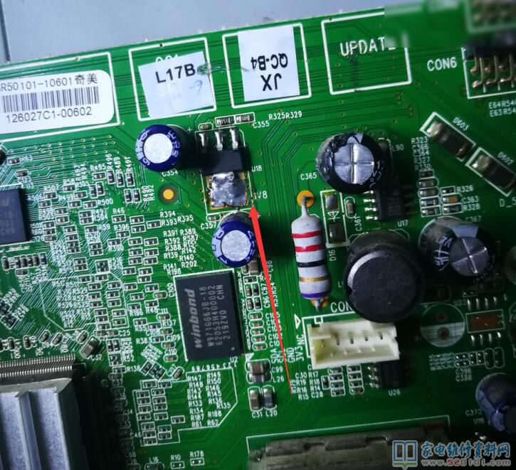 但是待机(红、蓝灯都没亮),感觉问题应该出在主板没有工作所以灯不亮,先用万用表量几个大个头的管U24电压3.34v跟旁边标识3.3V基本一致。
