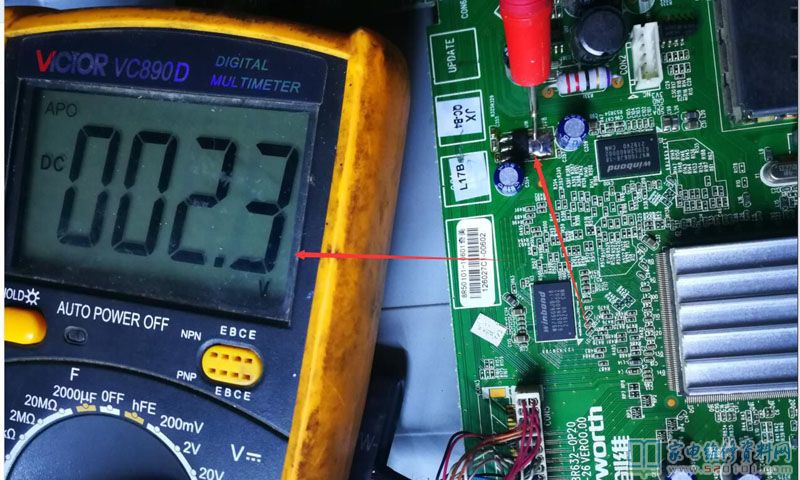 虽然机器是开机了,可这电压高出这么多有没有影响呢? U18由于没有图纸网上找了这机电源板图纸能找到,这主板图纸找不到,由于技术不过关也看不出这U18在这里起到什么作用,是不是它引起的不开机呢,最奇怪的是开机了待机红蓝灯还是没有亮哪位师傅知道是什么问题么,(万用表量了灯没有坏),放了一天了没敢交给客户,还怕有问题。